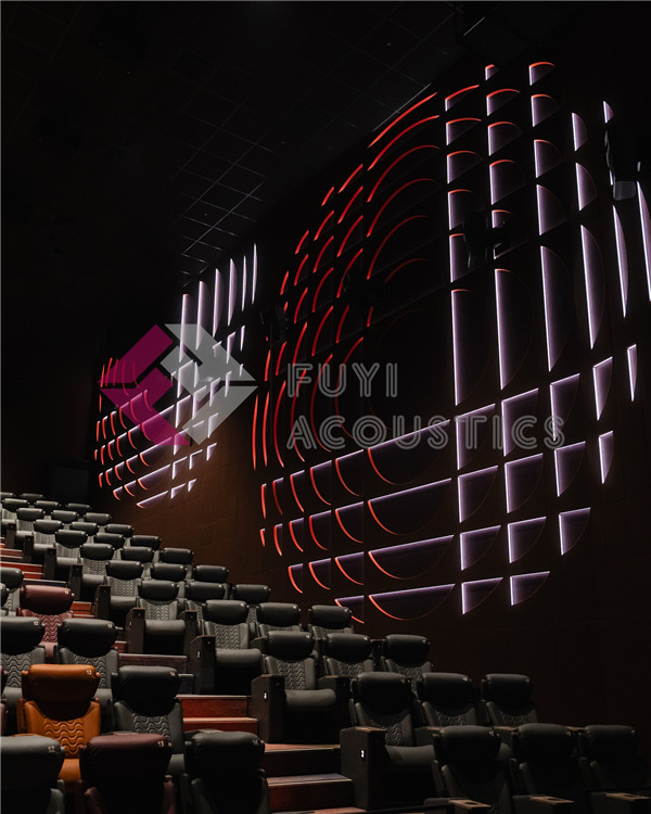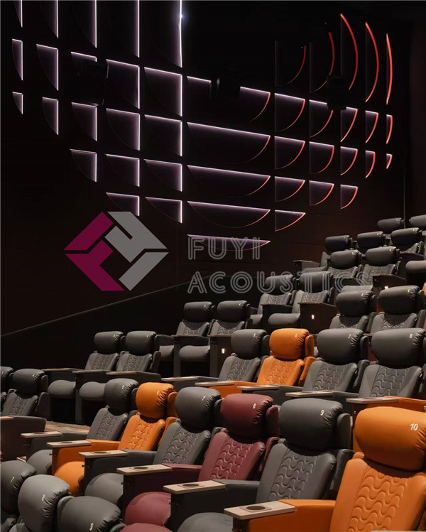 青岛福益声学产品设计开发有限以20多年的声学技术积累,为该影城定制了兼具声学性能与视觉美学的产品:从阻燃玻纤吸声板、艺术吸声墙板,既精准吸收了影厅内的中高频杂声、优化了混响效果,又通过立体造型与色彩搭配,契合了影城科技感与沉浸感的空间设计风格。这些材料不仅达到了防火、环保等高标准要求,更助力该影厅实现了“声临其境”的观影体验——让杜比全景声的层次与细节,能清晰传递至每个座位。